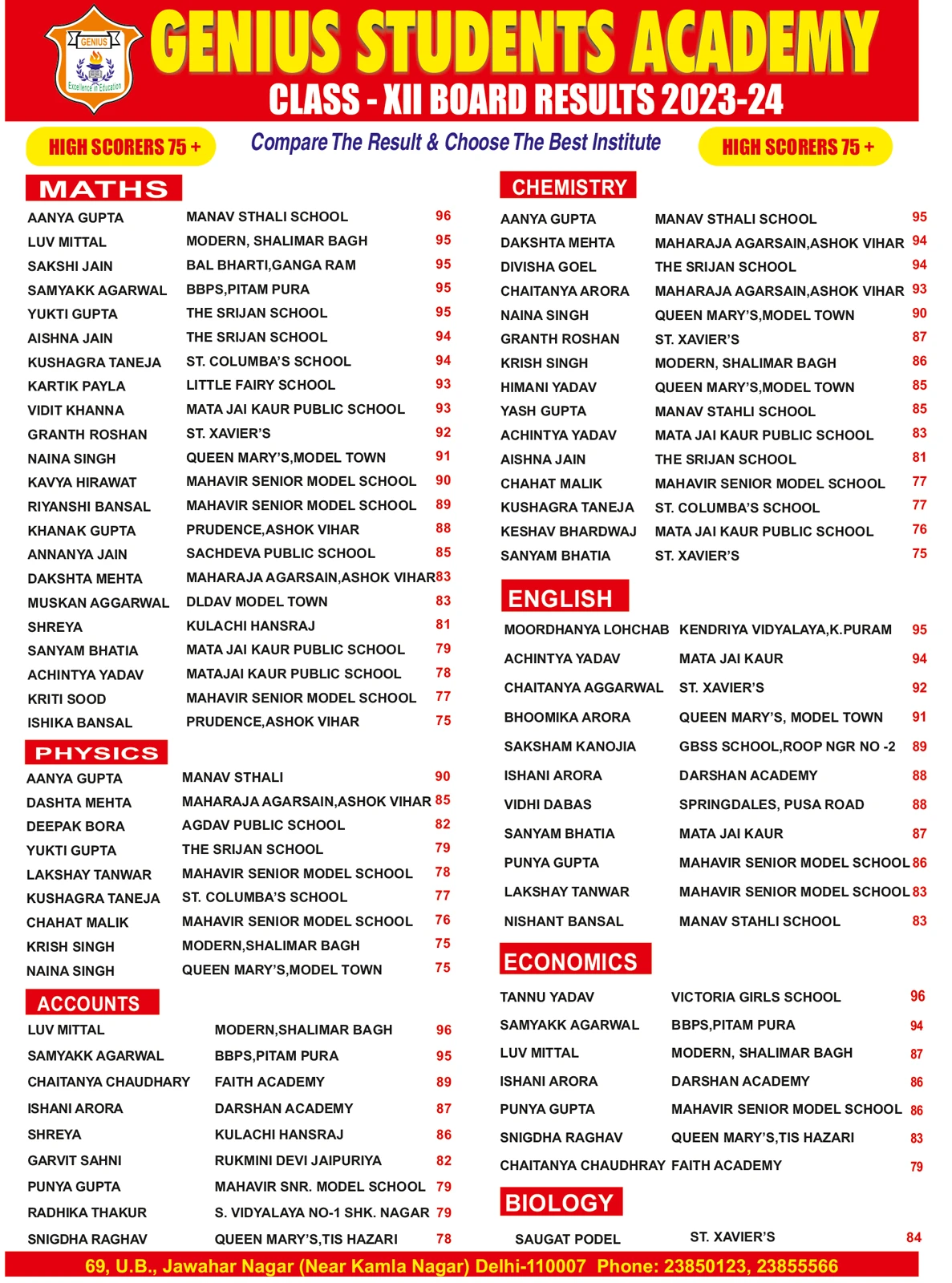 Genius Students Academy is the brainchild of academicians trying to cater to the educational requirements of school-going children. Parents, after all, cannot help in subjects like Mathematics, Science & Accountancy even if they have the time and the inclination to do so. G.S.A not only (as the name might suggest) takes geniuses as students but endeavors to bring out the genius in every student.